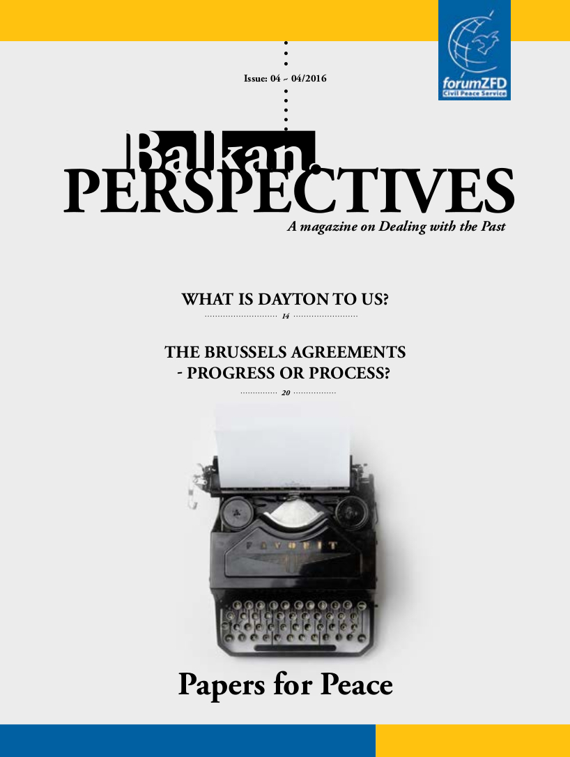 To mark the occasion of the 20th anniversary of the Dayton agreement in Bosnia, the fourth issue of Balkan.Perspectives is dedicated to treaties and negotiations for peace. We explore the impact of different agreements and treaties in the region and also discuss their limitations.